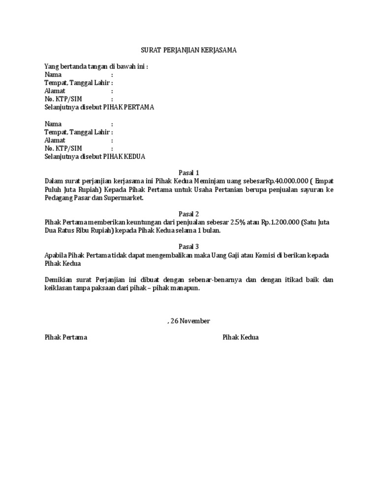Surat rasmi biasanya di guanakn untuk urusan yang rasmi atau mahu membuat permohonan bagi satu perkara yang penting. Surat perjanjian pinjam uangpada hari ini kamis tanggal 25 bulan desember tahun dua ribu empat. Dalam Contoh Surat Perjanjian Antara 2 Belah Pihak Gawe CV telah memilihkan tema atau template yang terbaik untuk dijadikan inspirasi ide ataupun acuan dalam penulisan surat anda.